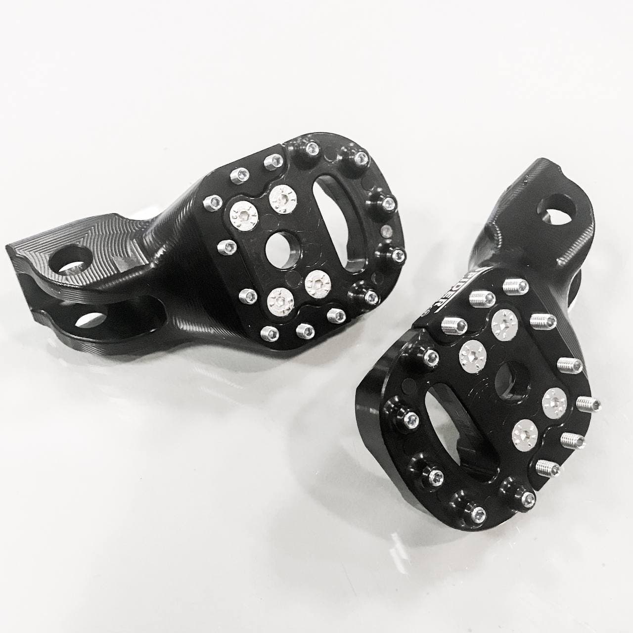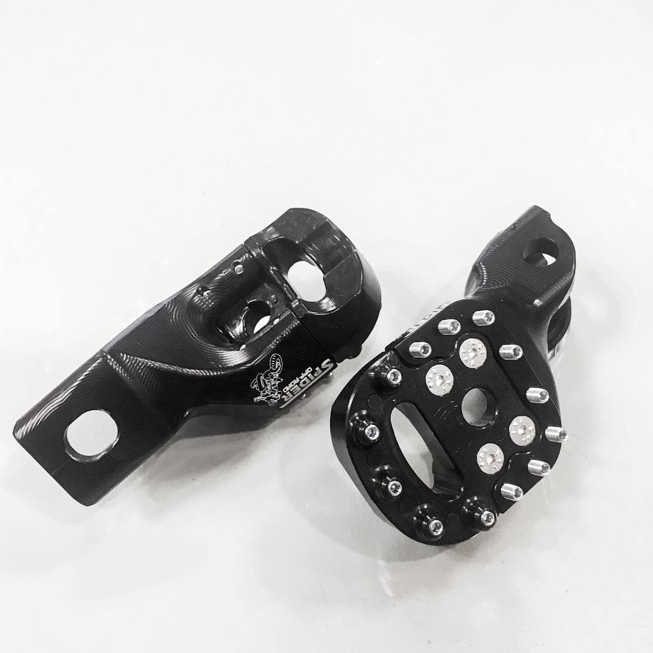 Pedane specifiche da supermotard SPIDER OFF-ROAD in Ergal 7075 realizzate con grande precisione. Rialzate e arretrate di 1cm rispetto alla posizione originale.